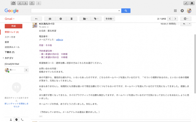 メールを拝見させていただきました。